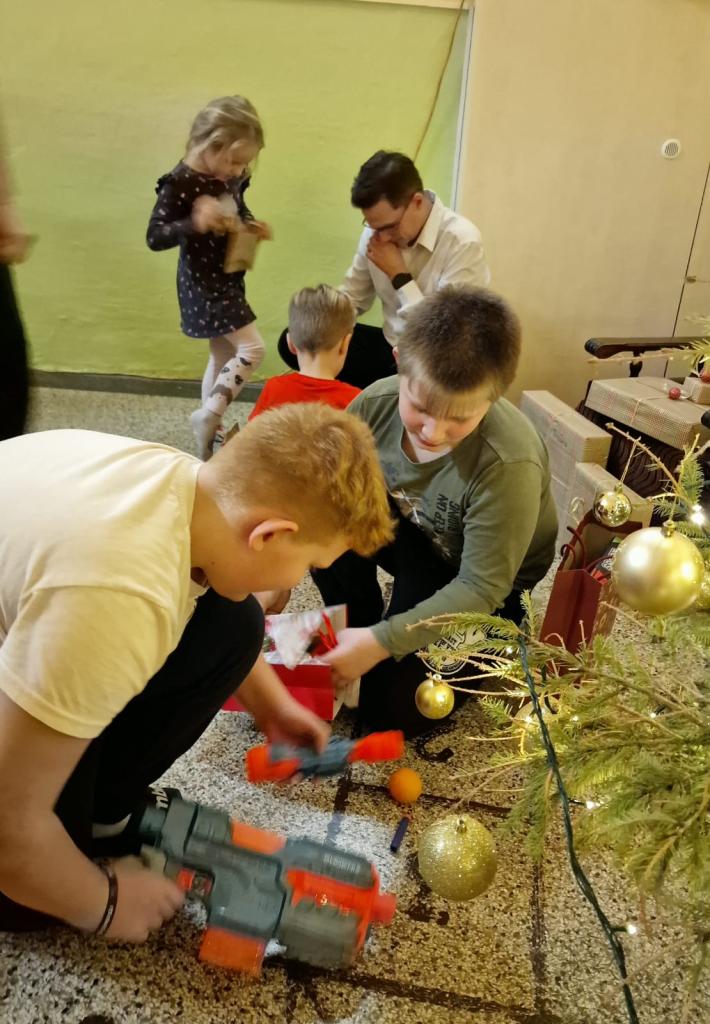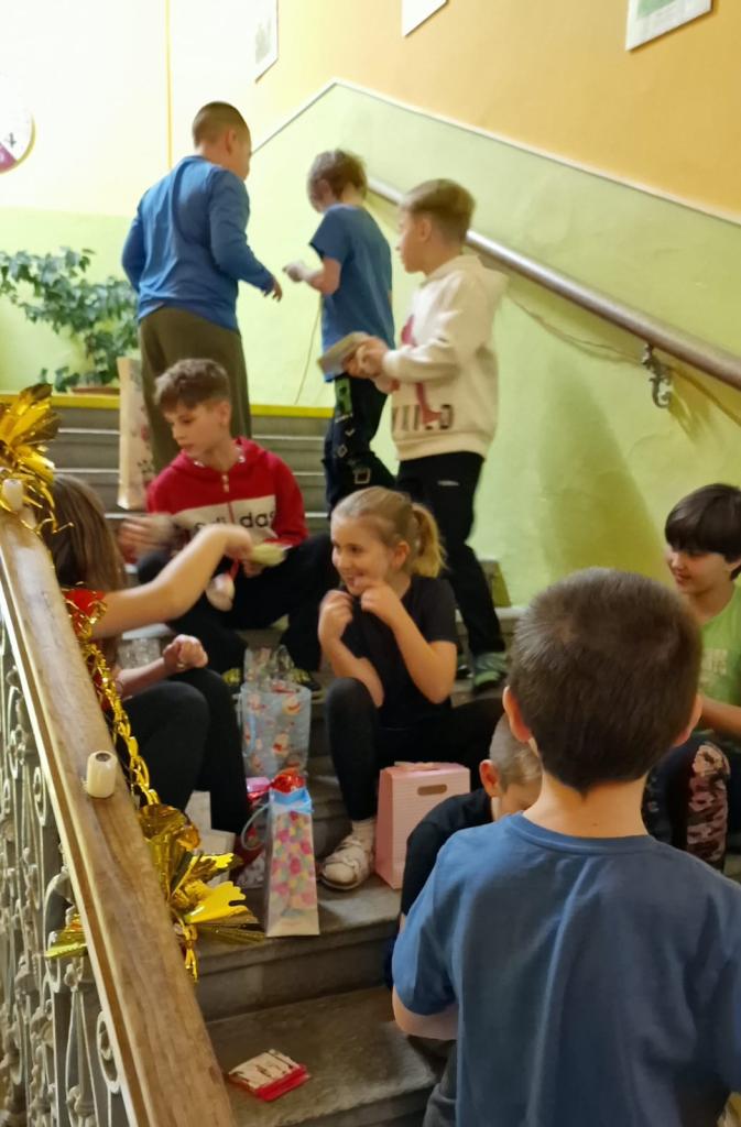 V předvánočním období jsme ve škole společně prožili štědrovečerní večer. Čekala nás slavnostní večeře s přípitkem, při které panovala příjemná atmosféra. Děti si mezi sebou rozdaly dárky, zazpívaly si vánoční koledy a užily si společně strávený čas. Potom následovaly zábavné hry. Večer jsme zakončili přespáním ve škole, na které se děti velmi těšily.