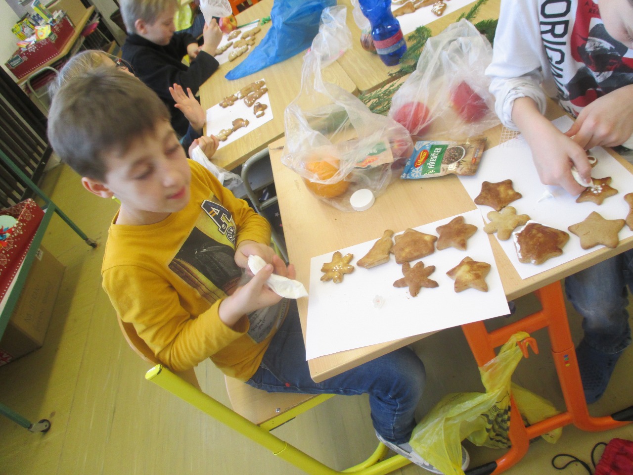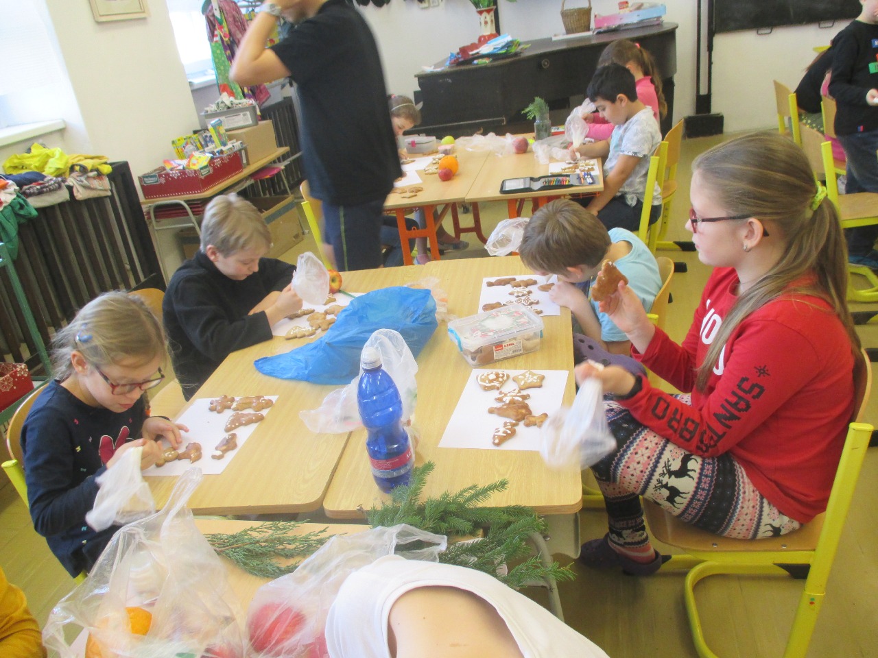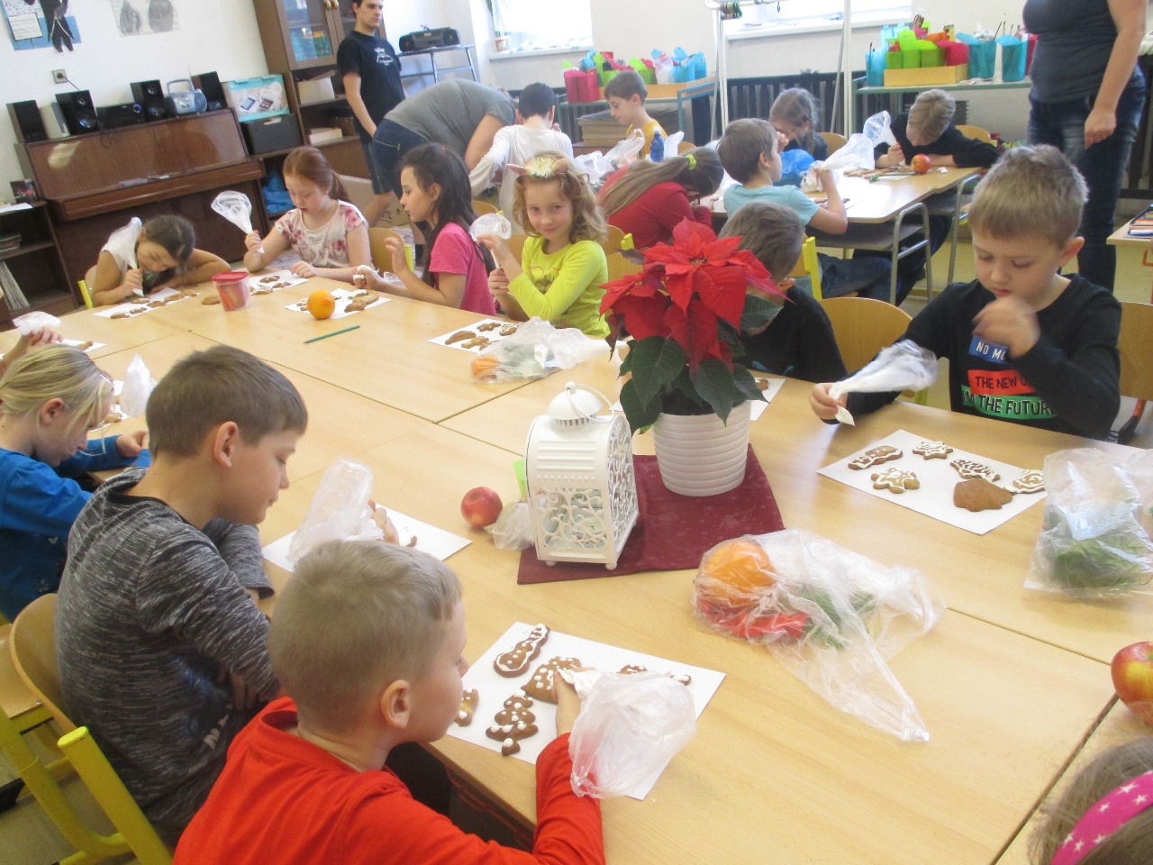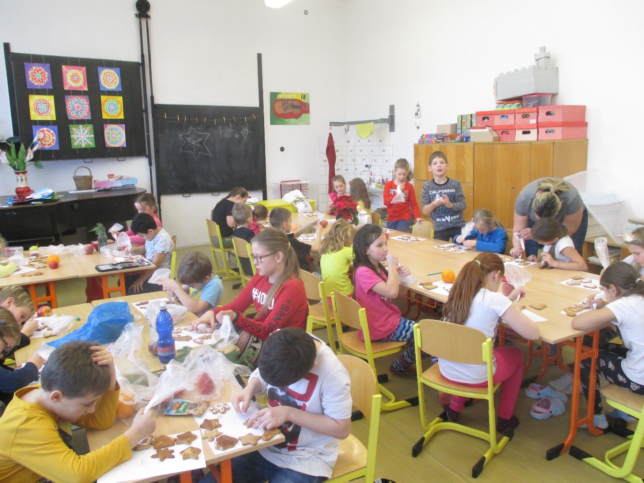 Poslední den roku ve škole věnujeme zdobení perníčků, výrobě svícínků a čtení vánočního příběhu. Nechybí ani připomínka dalších vánočních tradic - rozkrojíme si jablíčko, lijeme vosk (místo olova) a zejména u děvčat je velmi v oblibě házení střevícem (v našem případě bačkůrkou).