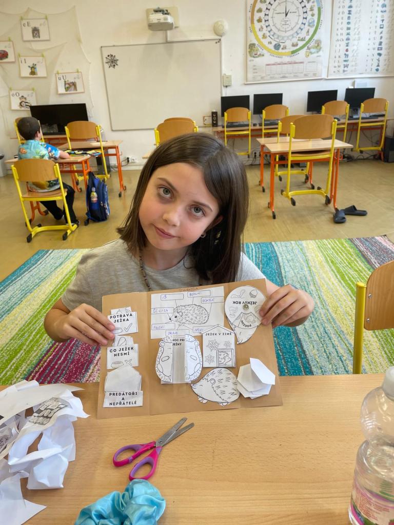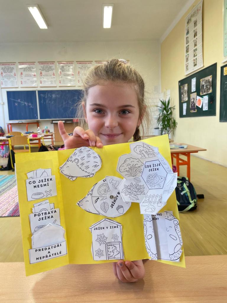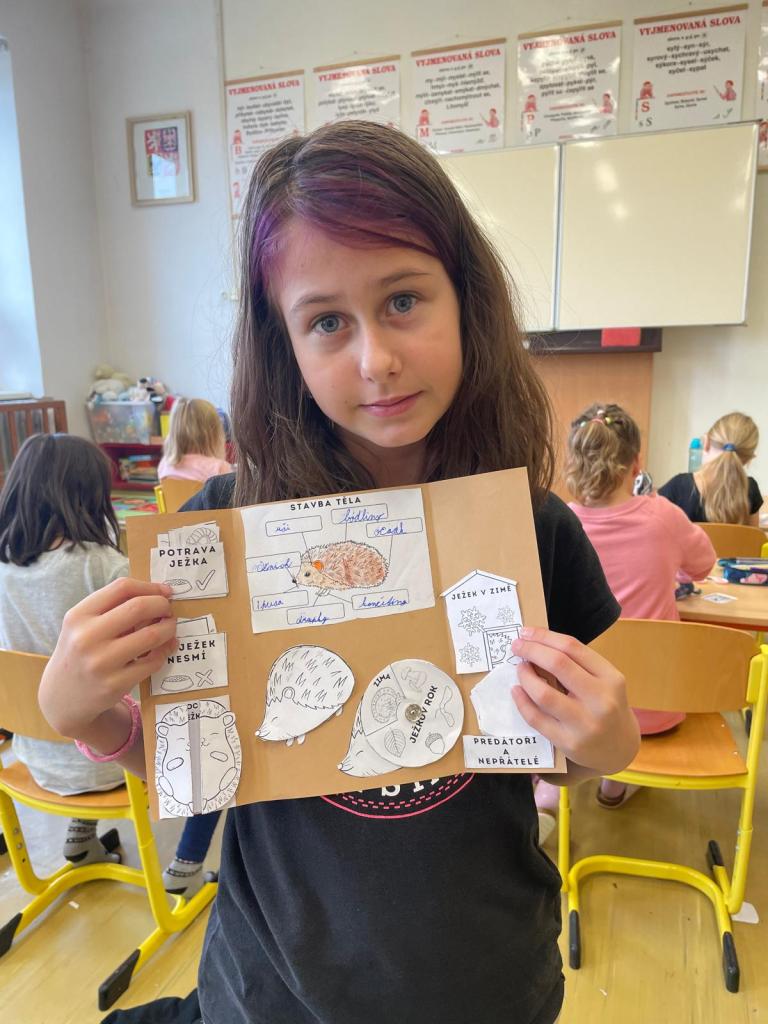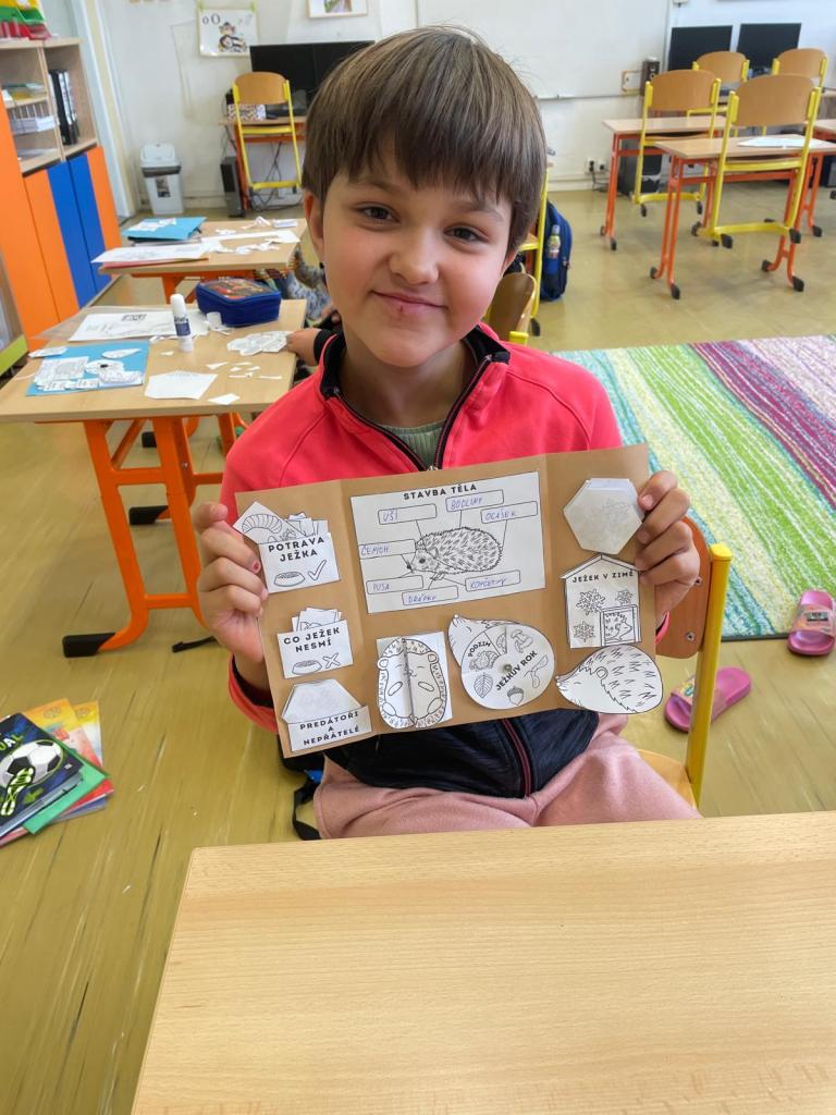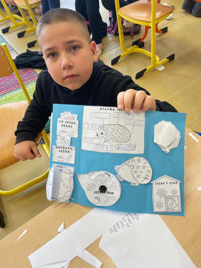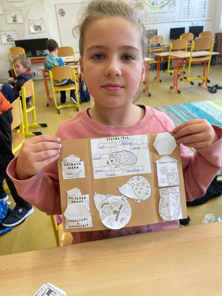 S ježkem Edíkem jsme zopakovali vyjmenovaná slova po B, řazení podle abecedy a psali a četli jsme písmenka, která známe. V matematice jsme procvičovali a v bloku po svačince jsme si vyrobili lapbook s ježkem.